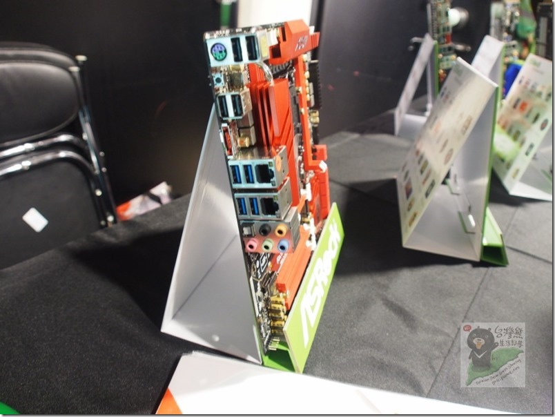 ASROCK也擺出大陣仗,其中最令熊關注的是MicroATX的X99主機板,這張紅通通的FATAL1TY主機板是目前台灣熊看過實際產品的唯一一張MicroATX X99主機板,對於不想要太大機殼的專業玩家應該是個好選擇!