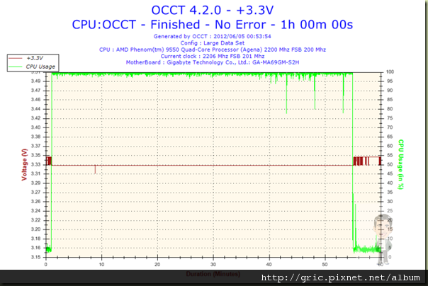 O32-O49 OCCT 4.2.0 測時1小時期間 No Error,熊也要省省電所以就測這一小時咯!