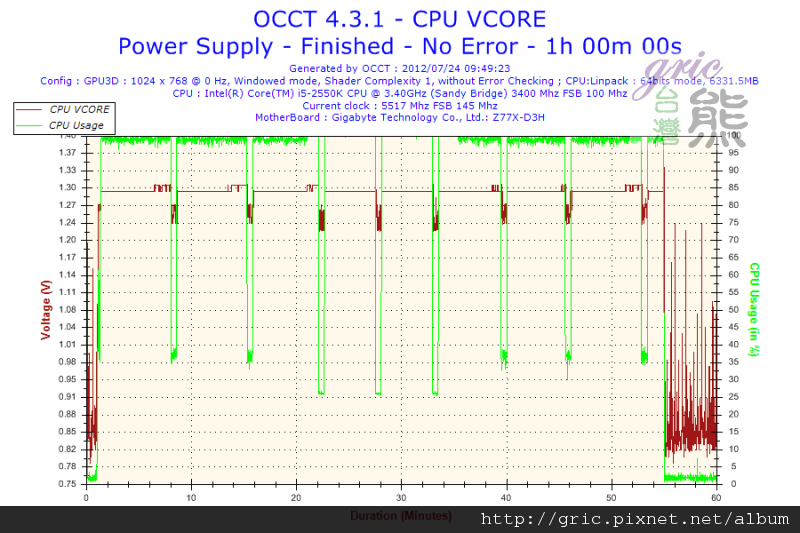 看來OCCT不只是幫你烤甜甜圈測POWER(其實OCCT本來的功能就不是只是用來測POWER而已),拿來做燒機測試也是不錯用,以目前這樣測試的結果加上本來就預備將i5-2550K拿來OC一下,這樣看來得要去準備神「冰」利器不然intel這一個標準的Cooler不能壓制小超頻的i5-2550K,進一步的OC求成績就別提了,所以一箭雙鵰也好來去弄一顆有用的好cooler回來。