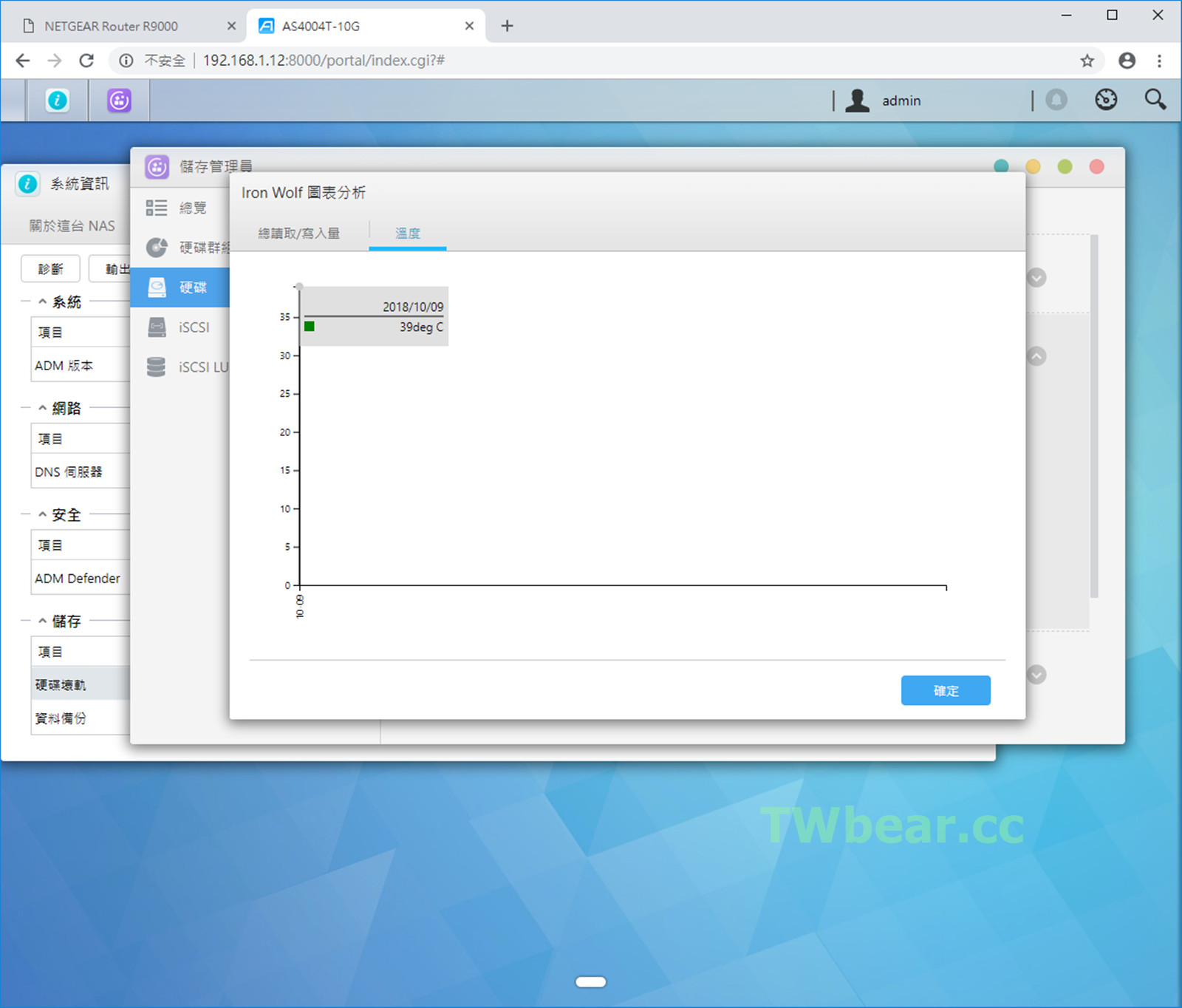 華芸的NAS OS是ADM、介面簡單易用,剛好之前這組希捷10TB那嘶狼台灣熊拿來與華芸家的AS6208T一起進行過評測,所以對於NAS的初始化安裝啟用可以參考這一篇文章、而且當時是在1G環境施測剛好也可以作為對照組(1G初測),可以讓大家看到最實際與需要的資訊”由1G環境提升到10G環境的實質效能差異”,所以這裡也就不多占版面 → [熊愛3C]更安全、更易用、支援網路聚合與提供多元應用的華芸AS6208T開箱搭配希捷那嘶狼10TB硬碟初測!